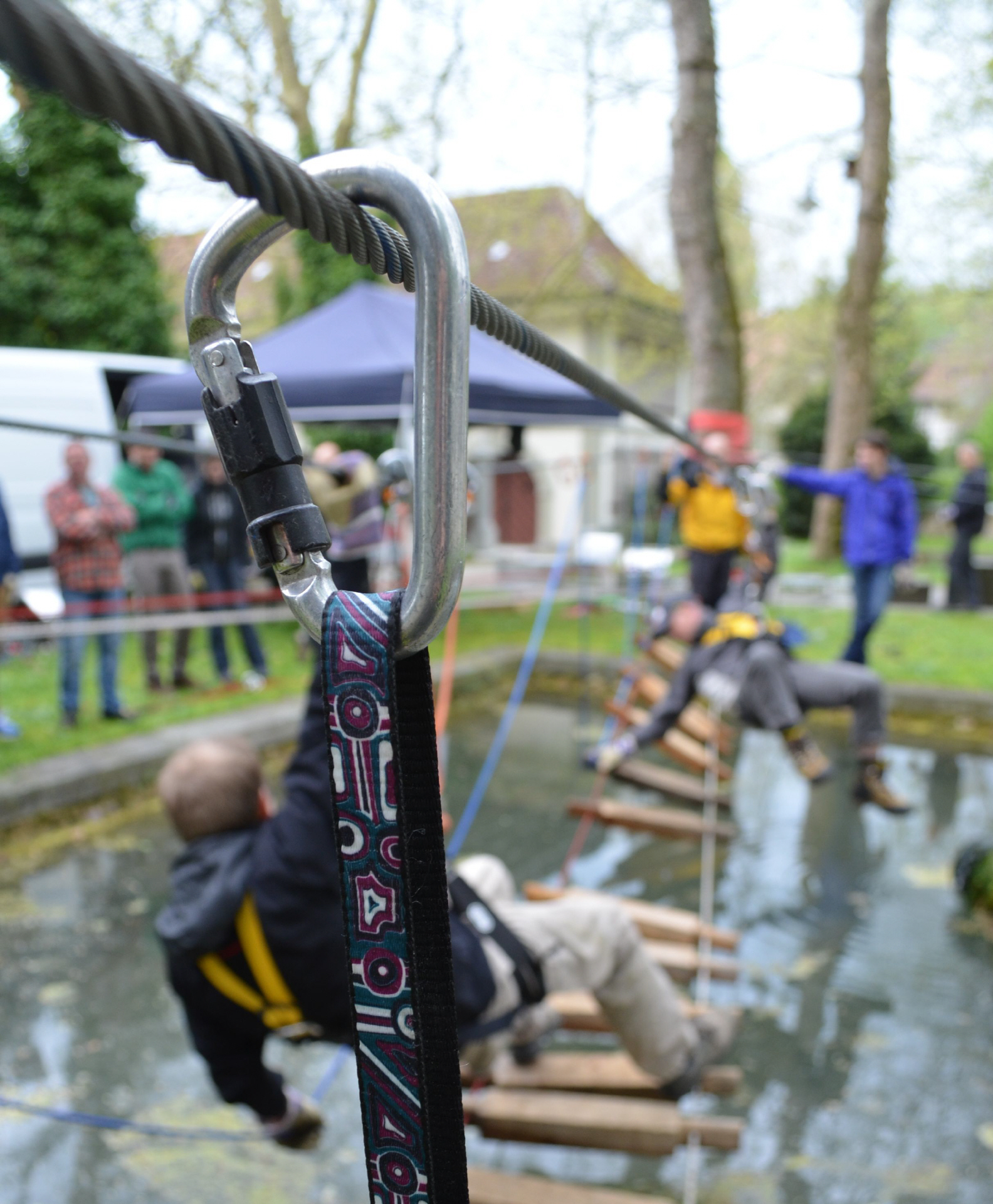 Unter der Leitung unserer Instruktore werden Sie in die Seiltechnik und den Umgang mit Baumstruppen, Umlenkrollen und Karabinern eingewiesen. Sie setzen die Anker, spannen gemeinsam im Team die Kletterseile und überqueren